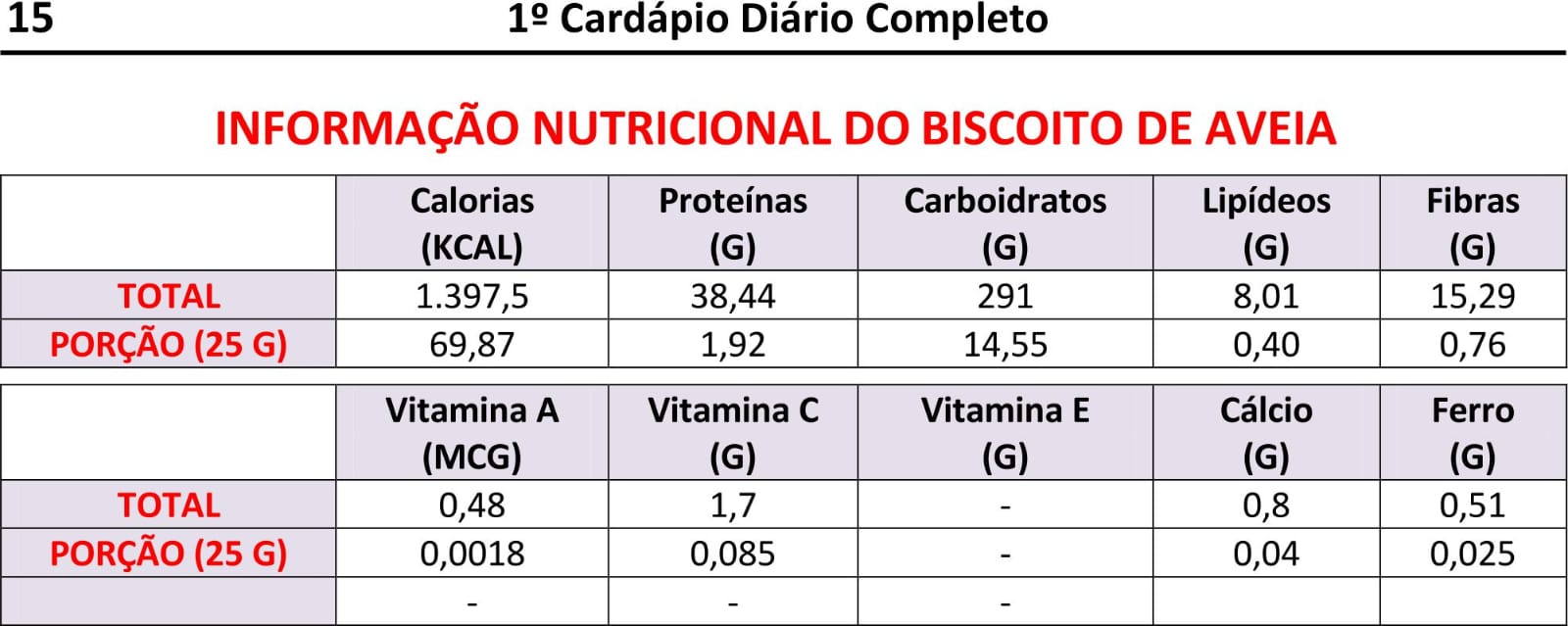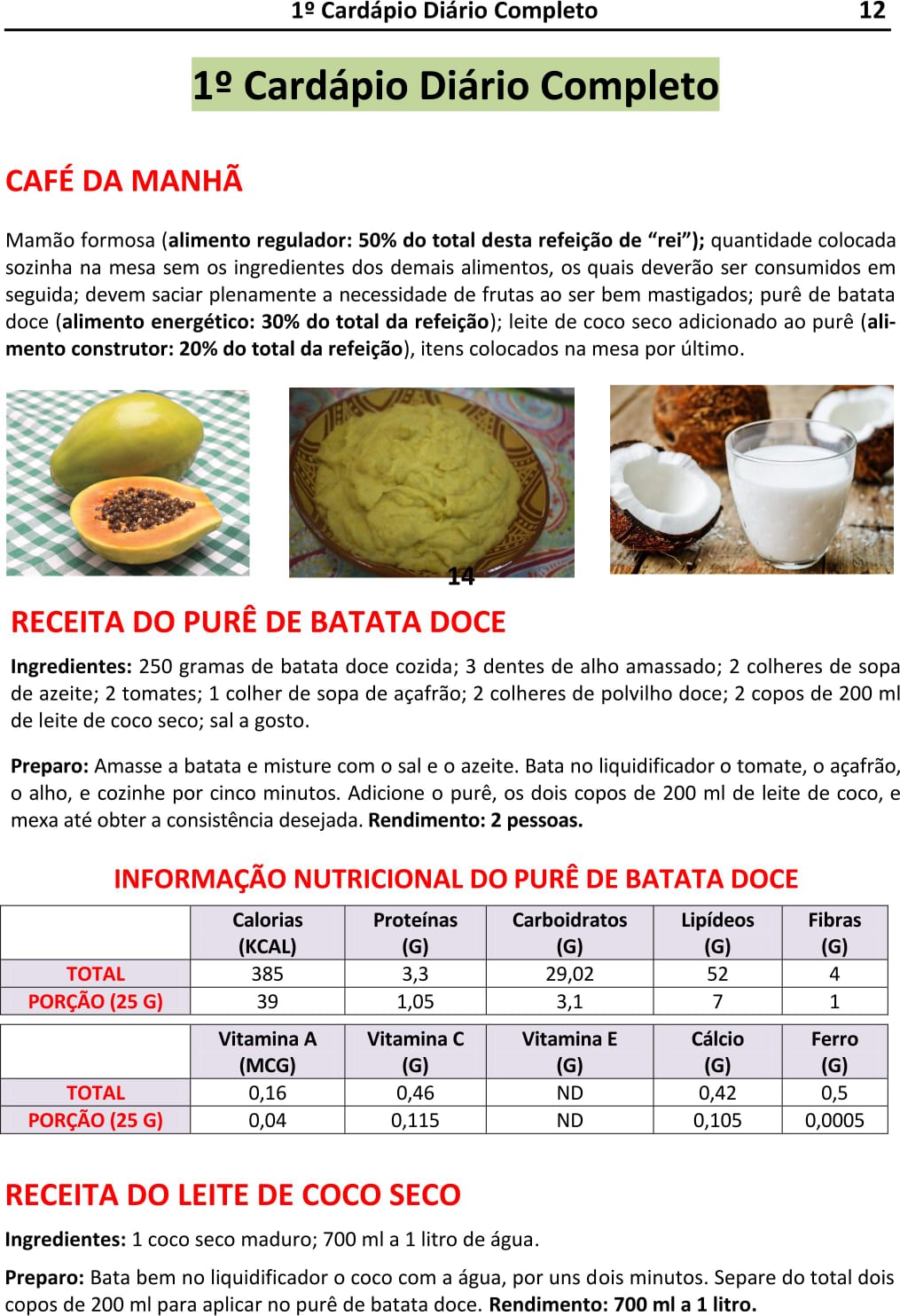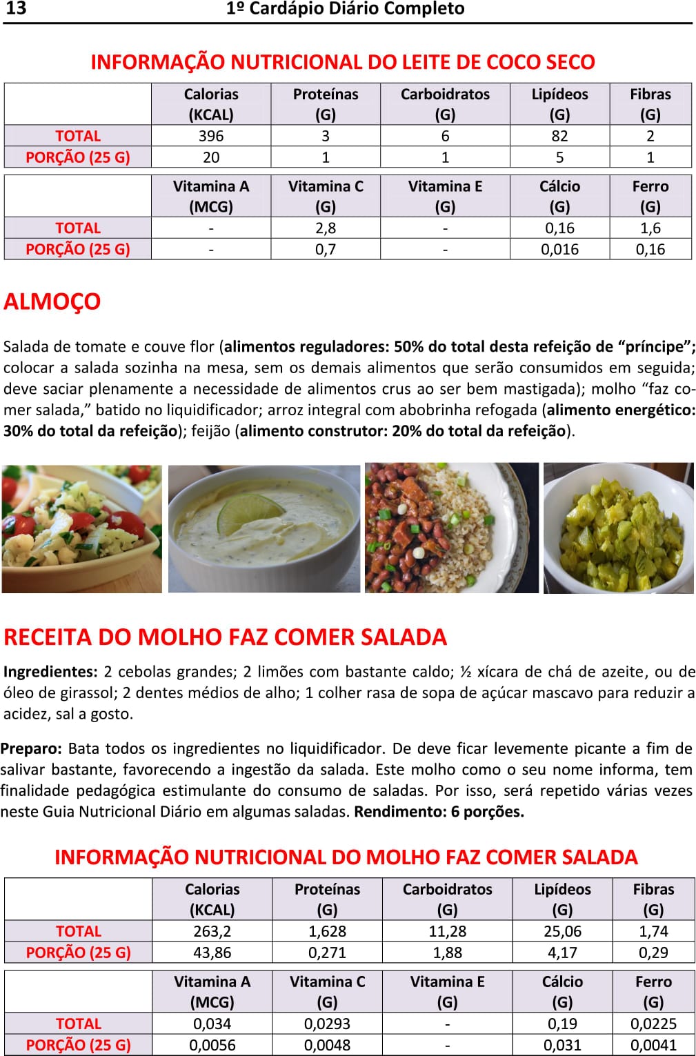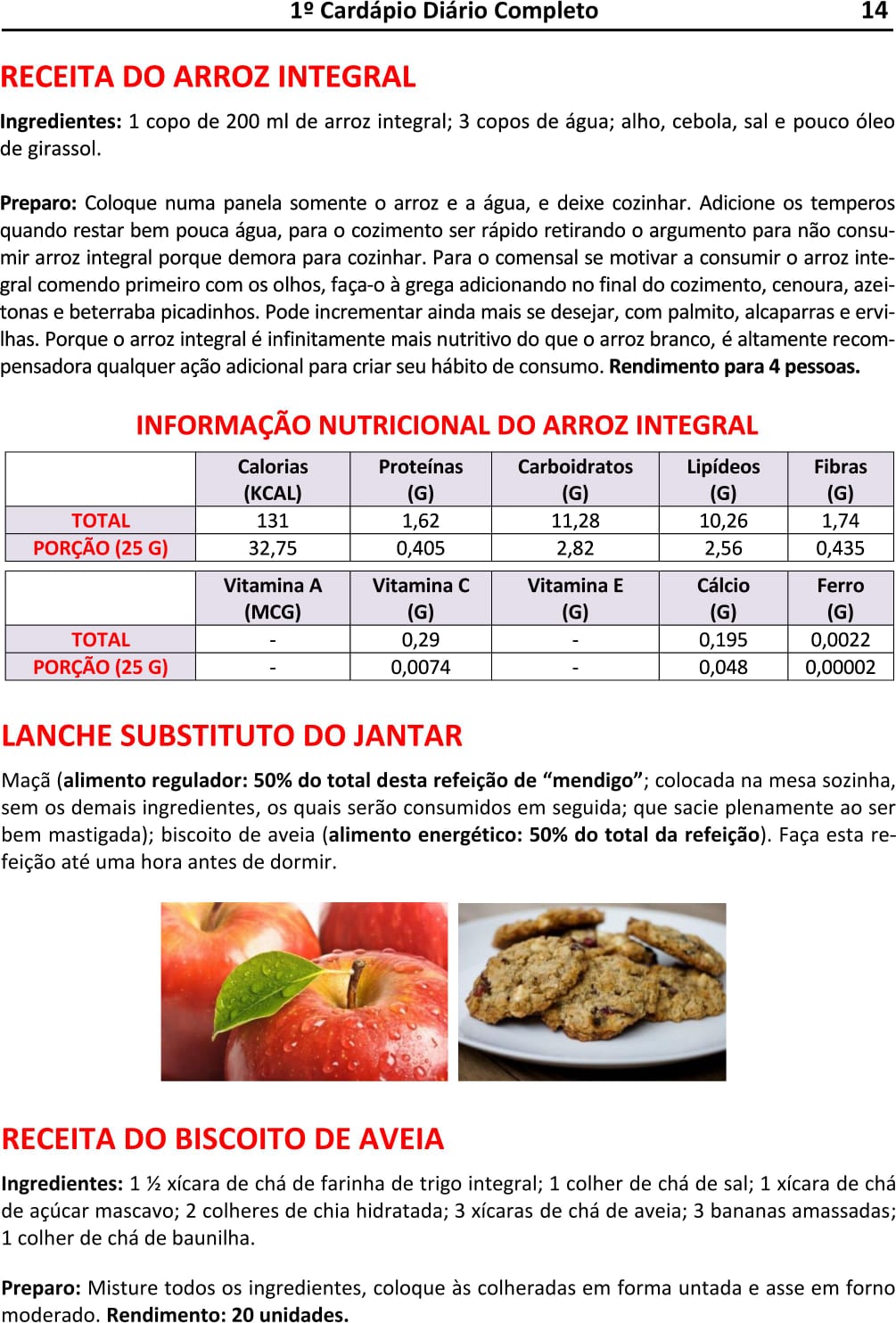 Como Lhe Apresentamos os Cardápios, Formas de Consumo, Receitas e Tabelas Nutricionais